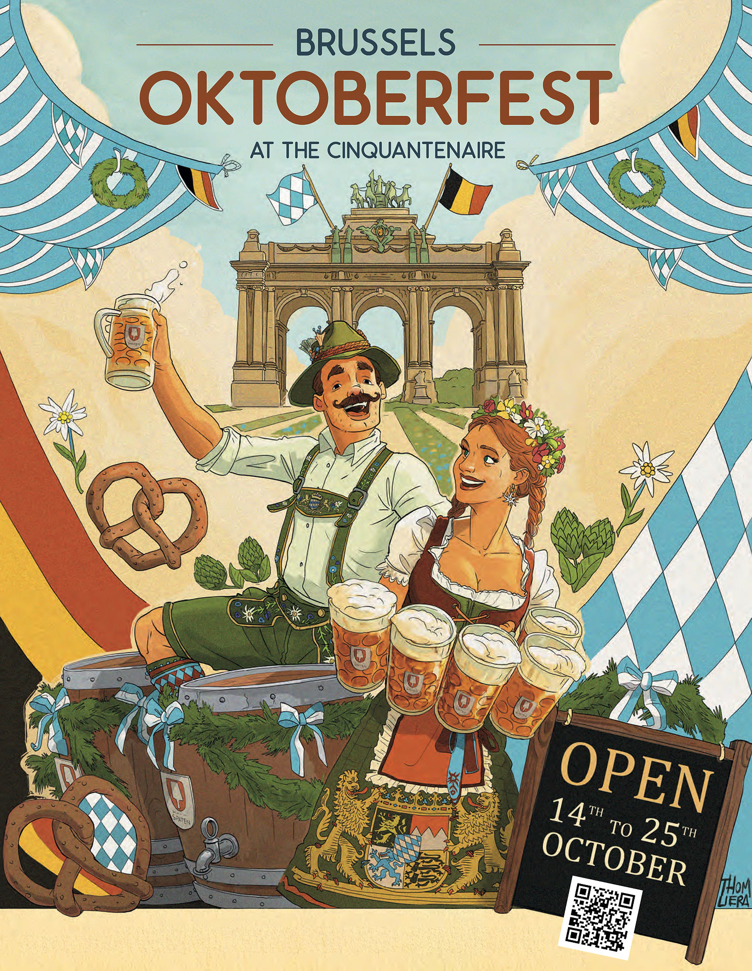 In Brussels too, the Bavarian tradition has been embraced, and the Oktoberfest has become an established event. For several years now, it has taken place in the heart of the Belgian capital, attracting visitors from all over Europe. The festival is held in a large tent, decorated in typical Bavarian style. With original Munich beers, Bavarian specialties like Bretzels (Brezn), white sausages (Weißwurst), and roasted pork knuckles (Schweinshaxn), along with traditional brass band music, the authentic Wiesn atmosphere comes to life.